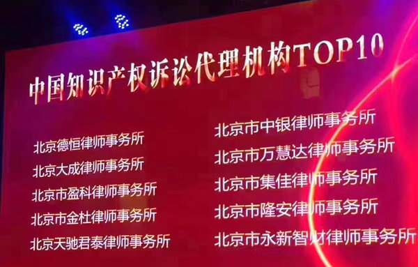 2017年6月23日,备受关注的知产宝“2016年度中国十佳知识产权诉讼代理机构榜单发布会”在北京隆重举行,杏彩体育凭借稳健的综合实力,入选“中国知识产权诉讼代理机构”TOP10和“中国商标行政诉讼代理机构”TOP10榜单。国内知识产权知名法律服务机构,近百位国内外大中型企业代表,以及36家知名媒体齐聚一堂,共同见证了榜单发布情况。