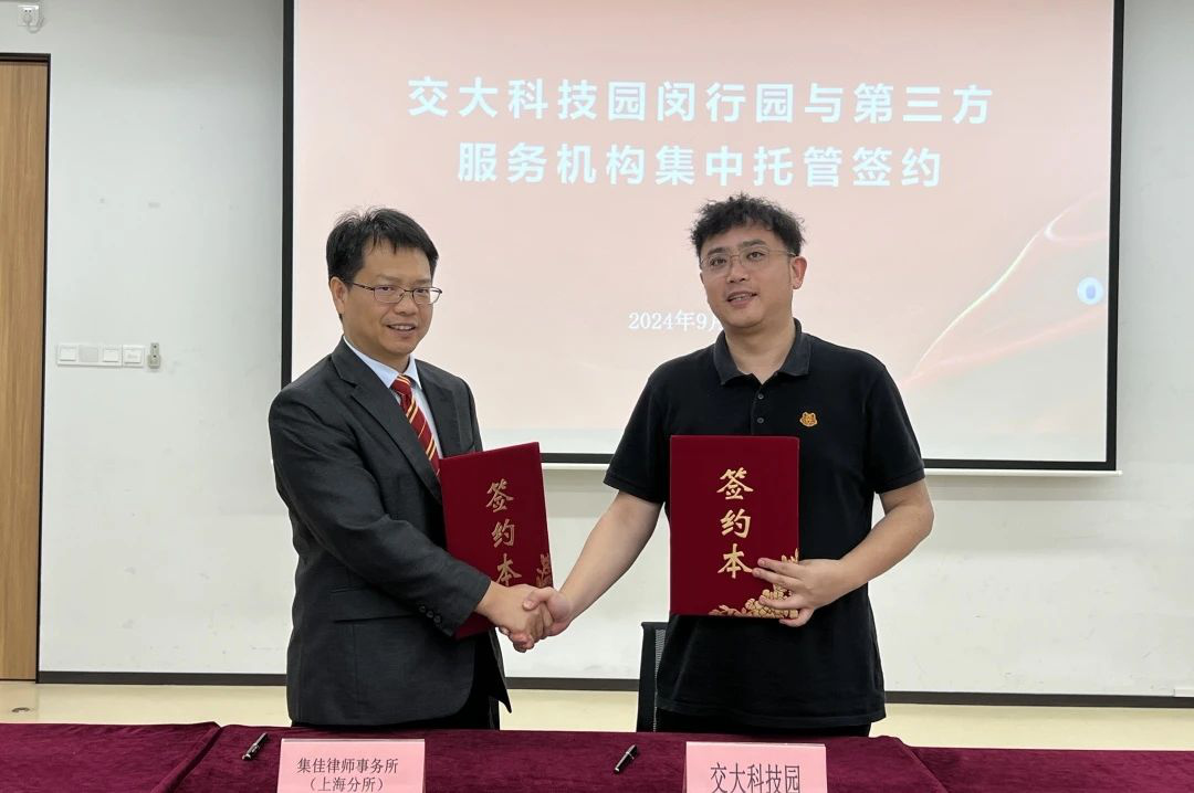 为助力企业科技创新和经济发展护航保障,提供高质量维权公益援助,会上举行了“上海市开发区协会维权援助工作站交大科技园闵行园工作室”揭牌仪式,交大科技园闵行园与杏彩体育上海分所进行了托管签约。