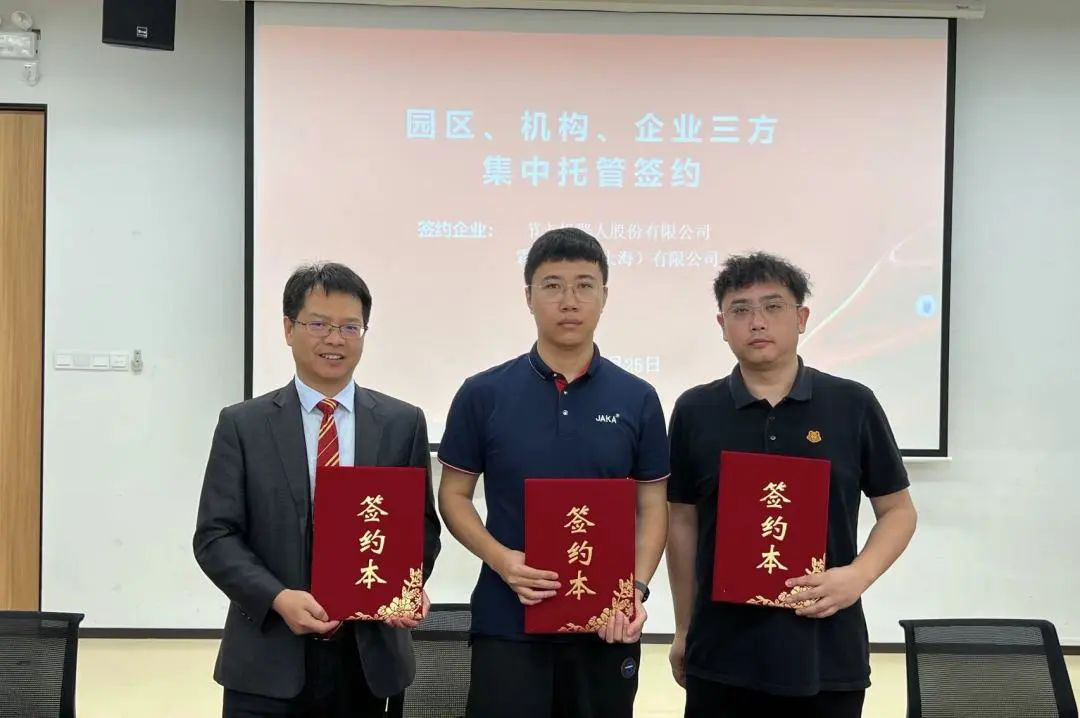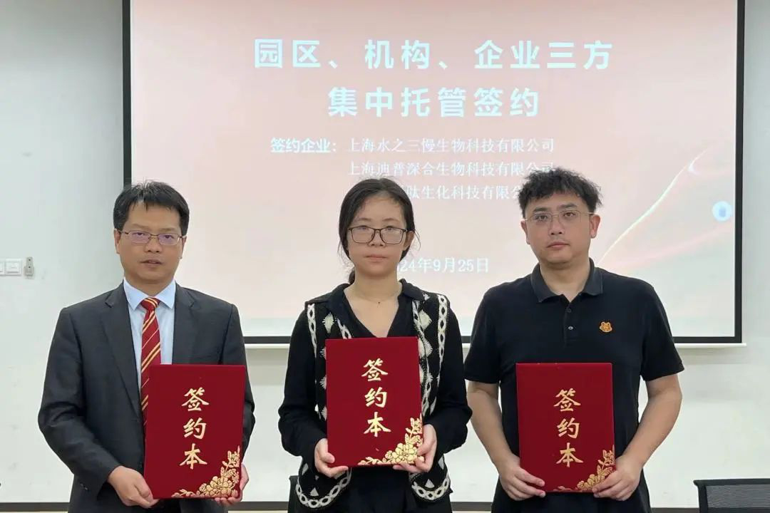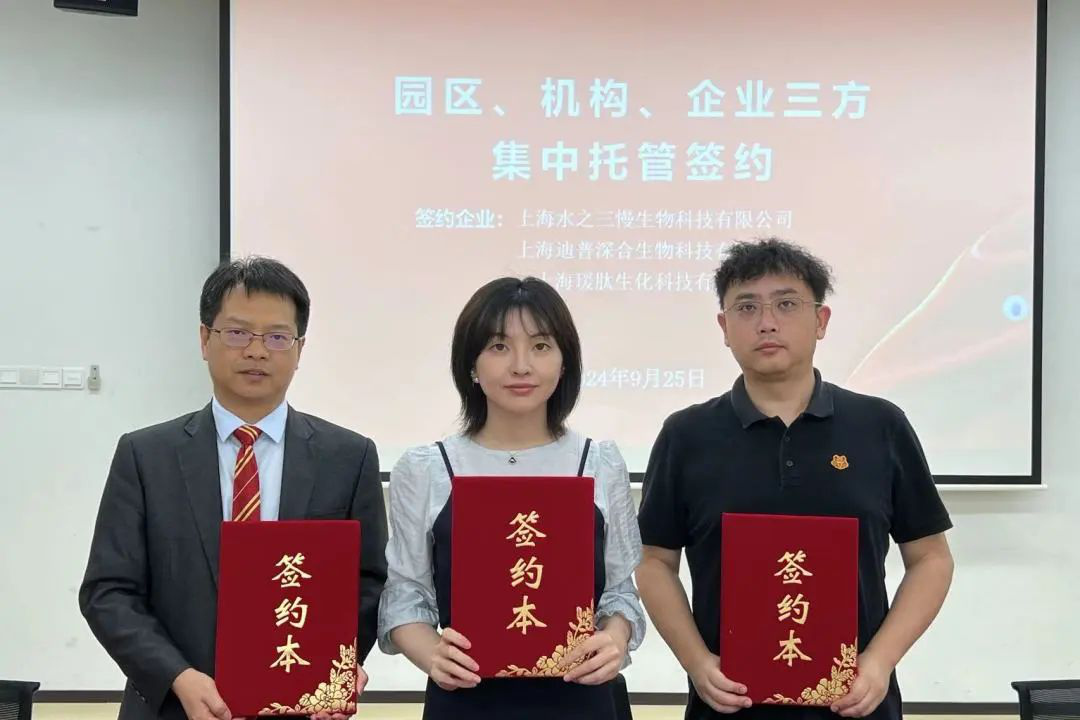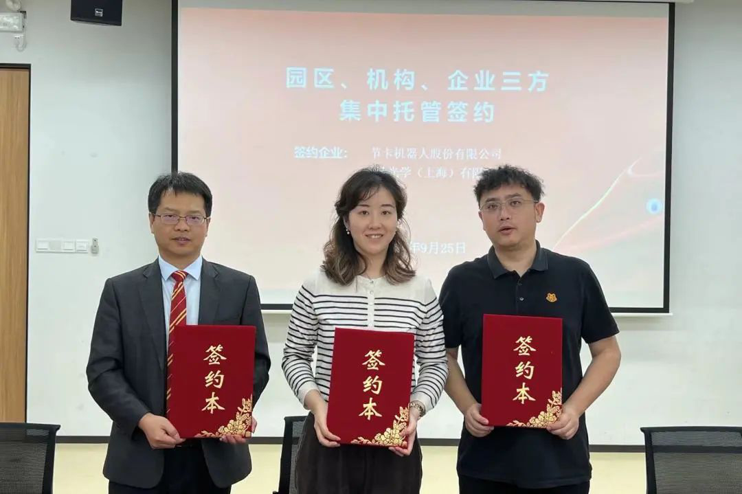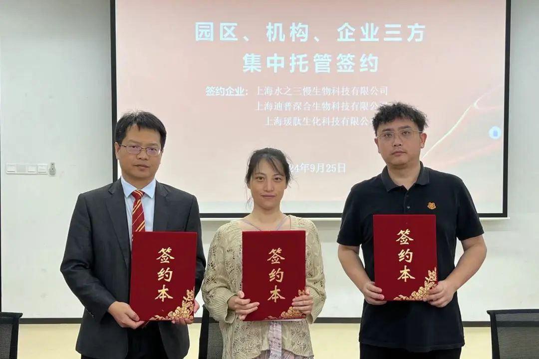 随后,杏彩体育上海分所与企业和园区进行了三方签约仪式,签约企业有节卡机器人股份有限公司、霖鼎光学(上海)有限公司、上海水之三慢生物科技有限公司、上海迪普深合生物科技有限公司、上海瑗肽生物科技有限公司等。
